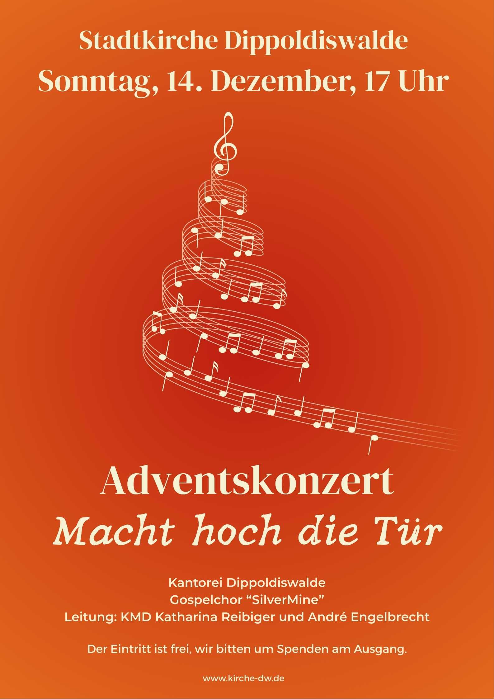 Gospelchor „SilverMine“ und die Kantorei Dippoldiswalde laden am 14. Dezember, 17 Uhr, recht herzlich zum Adventskonzert in die Stadtkirche ein. Es erklingt ein buntes musikalisches Programm und auch das gemeinsame Singen soll nicht zu kurz kommen. Die leitung liegt in den Händen von Katharina Reibiger und André Engelbrecht.