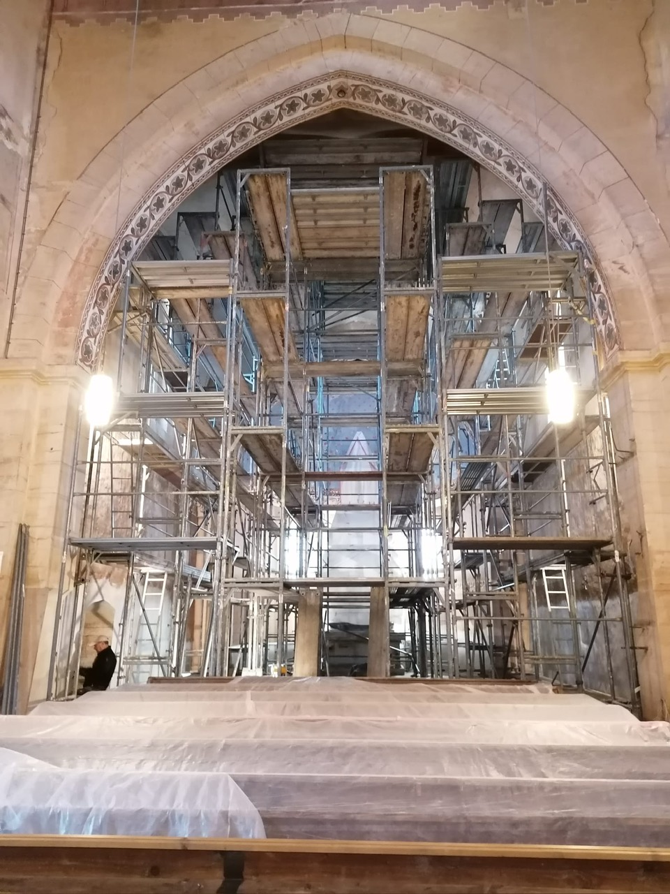 In unserer bedeutende Pfeilerbasilika in Dippoldiswalde werden in diesem Jahr die Apsis und der Altarraum restauriert. Möglich ist diese Erneuerung, da wir Projektpartner des Interreg – Projektes „Göttliche Klänge im Erzgebirge / Bošzké tóny v krušnohoří“ sind (Gesamtkosten des Projektes 1 123 246,15 Euro). Ziel des Projektes ist es, die Geschichte und Gegenwart von Orgelinstrumenten und Orgelbaumeister im östlichen Teil des Erzgebirges auf sächsischer Seite und auf tschechischer Seite im Gebiet der Bezirke Teplice, Most und Chomutov zu kartieren. Inhalt des Projekts sind die gemeinsame Präsentation und Repräsentation durch gemeinsame Veranstaltungen zur Sichtbarkeit, Förderung und Schaffung neuer grenzüberschreitender Verbindungen und Beziehungen in Kultur und Kulturerbe.