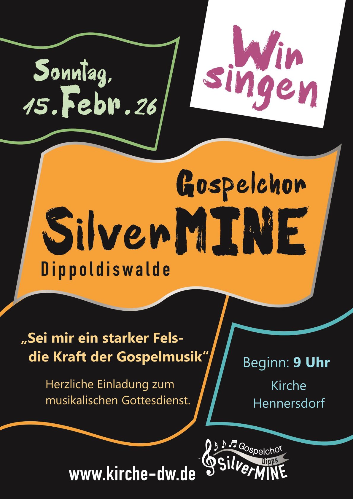 Herzlich eingeladen wird zum musikalischen Gottesdienst mit dem Gospelchor Silver Mine.